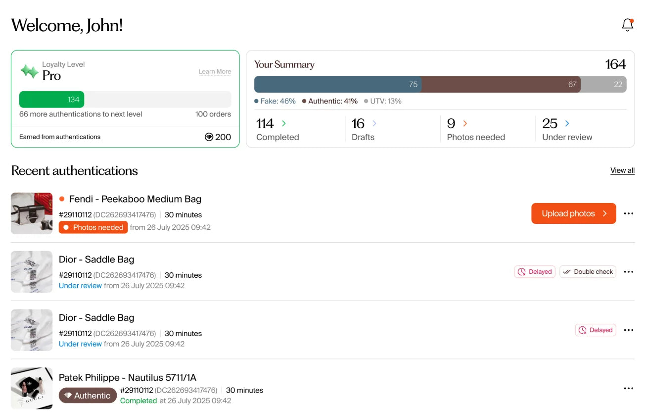 Yes, if your item is marked Authentic or Fake, you can download a certificate for free. You can also upgrade it with your business logo or choose a premium layout. Need a more detailed report? You can get a Written Statement – a longer document explaining the result, which is useful for disputes or proof of authenticity.