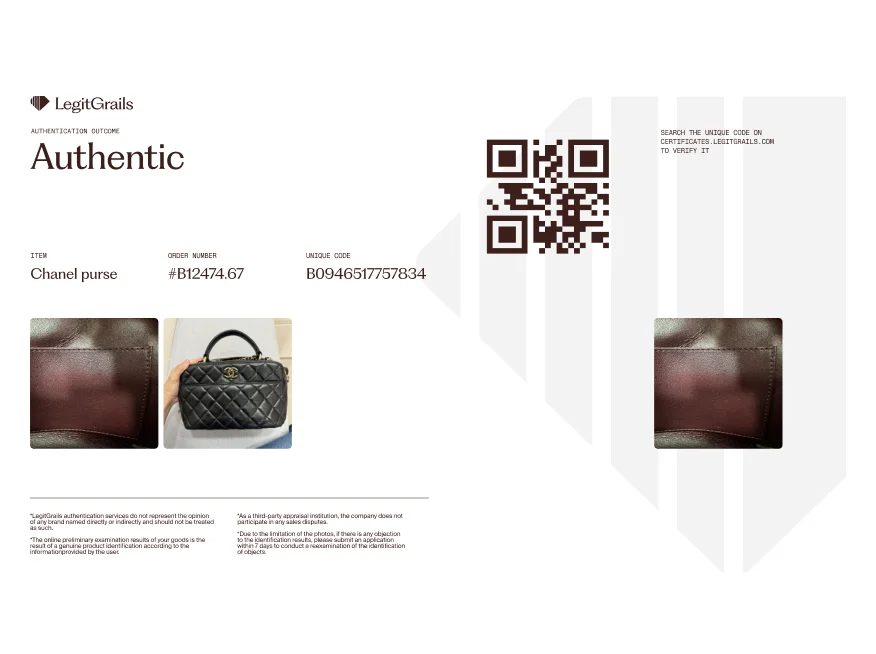 Our assessments and certificates represent our professional opinion only and are not official determinations issued by the respective brands. LegitGrails operates independently and is not affiliated with, endorsed, sponsored, or authorized by any brands featured, mentioned, or authenticated on this website.